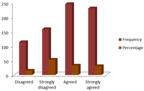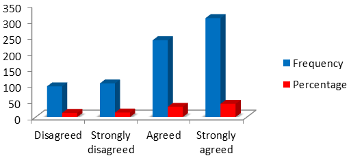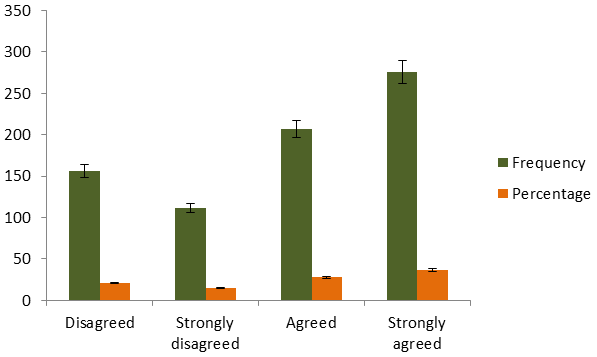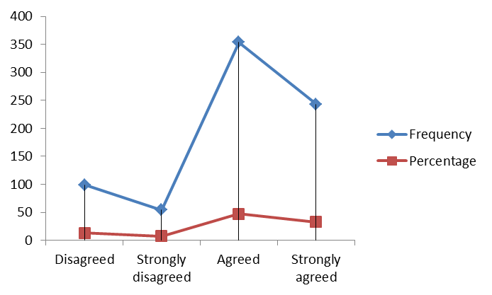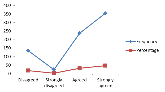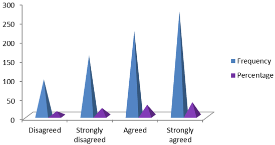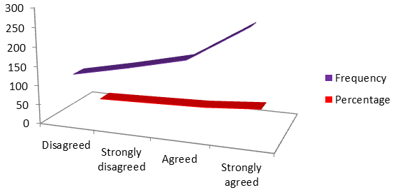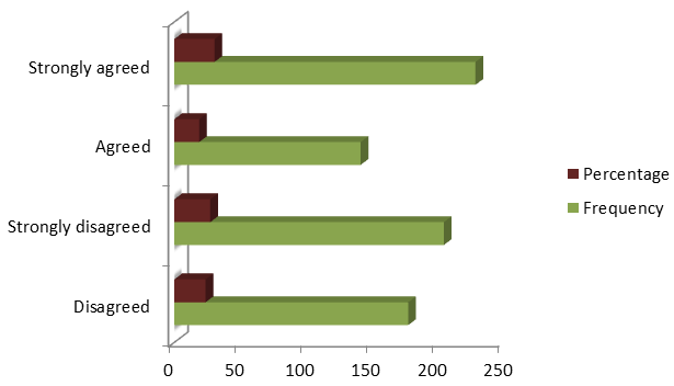 The result as shown in Figure 3 revealed that respondents who disagreed with the said question in the questionnaire were 6%. Additional 33(4.4%) of the respondents acclaimed to strongly disagreed with the question. 282 (37.6%) of them consented to be in agreement that gas flaring has impacted negatively on the environment and health of the residents in the communities. This finding is in conformity with the submission by Nwanya (2011) that the deleterious impact of the by-products from flaring gas posses great risks to built-up environment, health and the social well being of the local communities residing close to flaring site. Also 390(52%) of the sampled household respondents whom strongly agreed with the question as stated in the questionnaire corroborated the studies by Efe (2003) and FOEN (2008) that gas flaring is a major contributor to the stock of greenhouse gases in the atmosphere thus adding to the climate change chaos and induce acid rains which pollute creeks and streams, damage vegetations and corrode roofs of buildings.