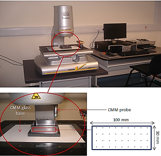 After the deposition of the WAAM sample, the width and the height were measured with the aid of both the CMM machine and a digital venire calliper and the results compared. The experiments were repeated five times to improve the overall accuracy of the result.