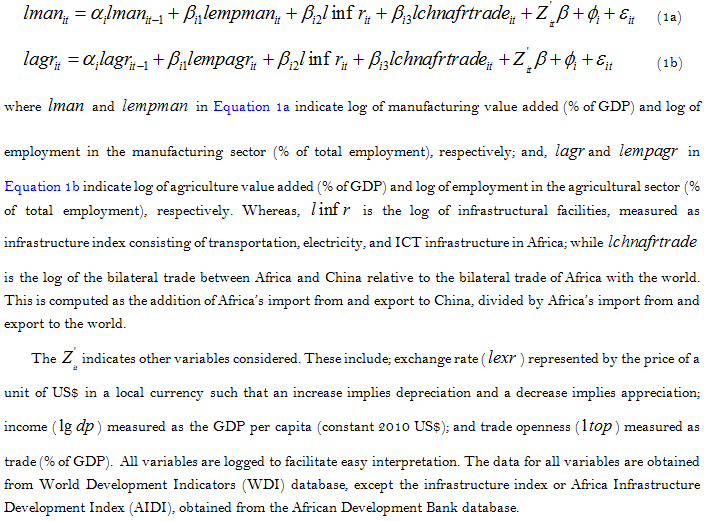 In terms of methodology, this study employs the two-step dynamic (difference and system) Generalized Method of Moments (GMM) by Arellano and Bond (1991) and Blundell and Bond (1998). This method is more efficient in dealing with short panels; where there is an asymptotic of large N and small T (which is the case in this study) (Blackburne & Frank, 2007). The significance of the two-step dynamic GMM model in dealing with endogeneity and heterogeneity issues has been well appreciated in studies on Dutch disease analysis (see (Apergis et al., 2014; Habiyaremye, 2016; Matallah, 2020)) albeit not on Dutch disease analysis of China-Africa trade on African countries. This study will fill an important gap in the literature as it sets to be the first study on the effect of China-Africa trade on African sectoral performance to employ dynamic (difference and system) Generalized Method of Moments (GMM) models.