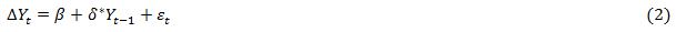 The ADF unit root test determines whether the estimates of the parameters are equal to zero. When the ADF coefficients of the statistics are less than the critical values of the fuller table, the variable is said to be stationary, otherwise, it is non-stationary. The PP unit root test is based on t-statistics and is written as follows: