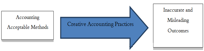 II. Negative Aspect: Creative accounting involves adopting tricks, methods of misrepresentation and numbers manipulation, i.e. adjustments arising from financial engineering, to demonstrate a particular situation in accordance with its effect on the balance sheet and the company outcomes to serve the interests of certain parties or conceal facts. Jameson (1988) stated that creative accounting practices do not violate law or accounting standards, so they are consistent with the law not with the spirit of the law. However, they distort financial outcomes and corporate positions, as well as mislead users of accounting information (Amora & Sharifi, 2011; Karim et al., 2011).