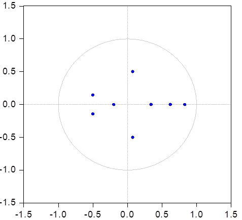 To test the validity of the model, AR Roots are analyzed. The results are given in Figure 1. Accordingly, all of the roots are inside the unit circle. This shows the model is appropriate for the analysis.