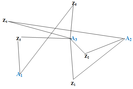 The values of z1, z2 and z4 are determined by the combined effect of the factors A2 and A3 and the indexes z3 and z5 - the combined effect of A1 and A3. The graph of the optimization based on the weights of the vertex allows us to determine that the graph contains an Eulerian circuit: A3 - z1 - A2 - z2 - A3 - z5 - A1 - z3 - A3 - z4 - A2. (Fig 3.2)