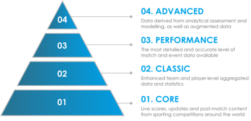 Opta is a visionary company, which offers detailed live or past matches’ data to better the best sports experiences. Opta is the world's leading supplier of detailed sports data. Having a 20-year history, Opta collects, analyzes and distributes data and content to sports clients. It serves customers worldwide in publishing, media, betting, professional fans, sponsorship and brand activation areas. At Opta, the process begins with data and is carried out by specialized data analysts at centers around the world, supported by stadium analysts. Opta's biggest advantage is to provide solutions to different customer needs, technologies and platforms. The pyramid system that introduces the operation of Opta is shown in Figure 1.