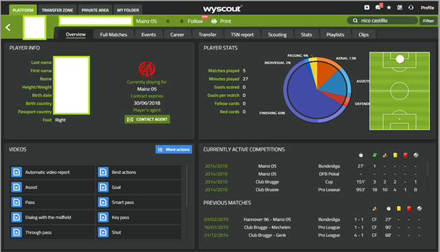 Wyscout works with membership system. Subscription option, that includes unlimited access to videos of one country, unlimited data and statistics and transfer tool costs 148 Euros per month. For this charge, the Wyscout provides all kinds of data to the manager, coach, analyst and scout in the competition. It offers video, data, statistics and a number of tools for professionals. There are versions that can be run on desktop computers, tablets and mobile phones. It serves more than 1,200 countries. Scored and defeated goals include goals scored, offense, defensive tactics, counterattacks, corner positions, free throw positions, penalties, throws, offside positions, fouls. For the players, all the actions in the game such as positive and negative types of passes, positive and negative shots, playing time, goals and assists, positions missed, cards seen, fouls made and won are included Figure 2.