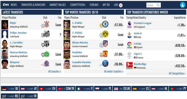 Figure-3. A screenshot from Transfermarkt website Transfermarkt (2018).
