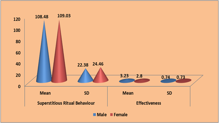So, it is evident that irrespective of male and female athletes they believe in some short of superstitious rituals. The superstitious rituals are sometimes provides mental strength to perform well. Though there is no such scientific evidence that the superstitious rituals helps in performance enhancement. Then also the sports persons believe in superstitions. By this understanding the present researcher intended to find out male or female University level sports persons who believes more in superstitions.
