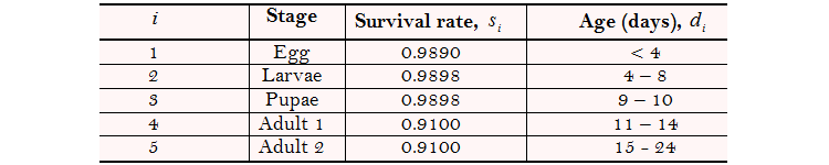 Table-1. The Survival Rate and Duration of Each Stage in Mosquito Life Cycle