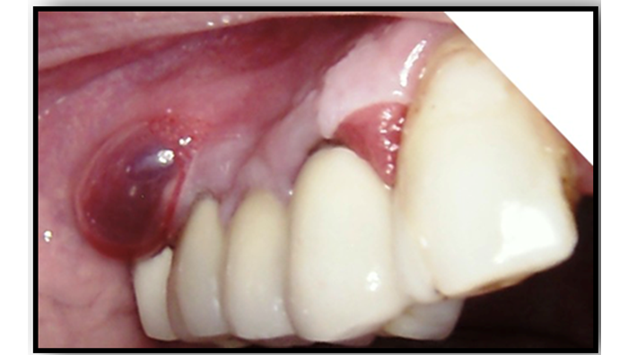 During the scheduled visit to dental office a 54-year-old male was diagnosed with bullae in vestibular aspect of right maxilla. He was reported to the outpatient Department of Oral and Maxillofacial surgery, FDM, MU - Sofia, with a chief complaint of bullae. He has no history of difficulty in swallowing food or any eyesight problems. On general physical examination there were not any complaints and findings. On intraoral examination, a solitary intact bullae measuring about 5 mm in diameter was present on the upper labial mucosa.(Fig.1.) No other bullae and vesicles were founded. Based on patient's history and clinical presentation, a provisional diagnosis of mucous membrane pemphigoid was considered. After the rupture of bullae it left large, superficial, ulcerated, and denuded areas of mucosa.